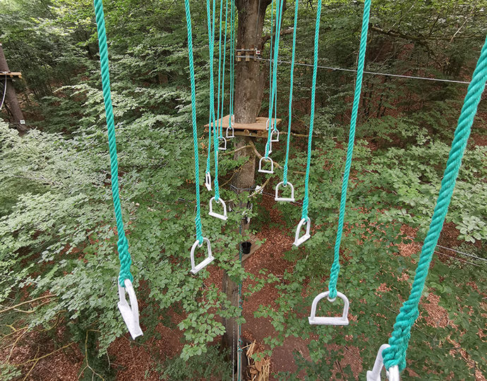 Acrobatic course in the trees, totally independent of the other courses, composed of various monkey bridges, a net chimney, suspended acrobatic skittles, giant "L", various zip lines, level ladders, suspended barrels, pirate nets, stirrups, coconut balls etc...
